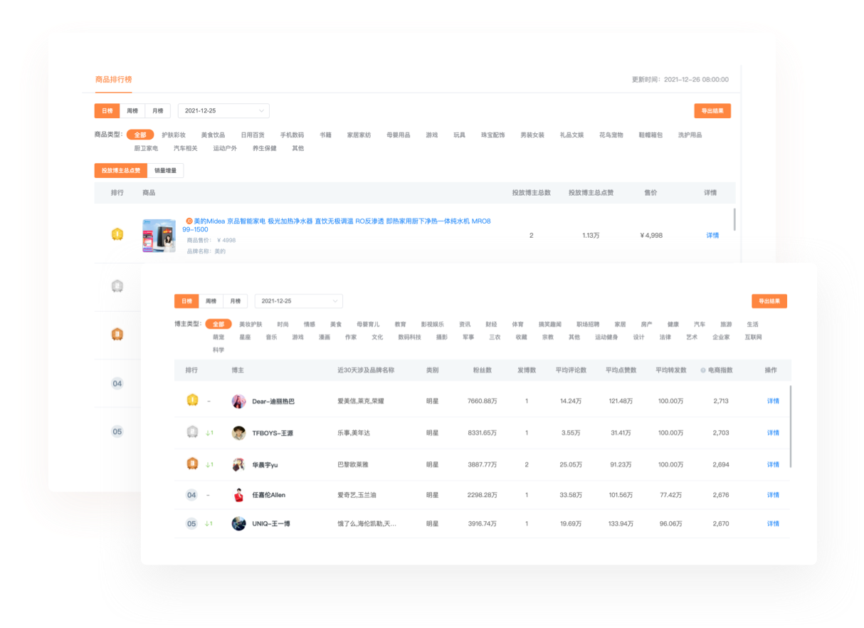 多項內(nèi)容全面解讀達人,歷史內(nèi)容追蹤,AI去水粉絲預(yù)估,智能算法評估達人價值,有效挖掘優(yōu)質(zhì)達人